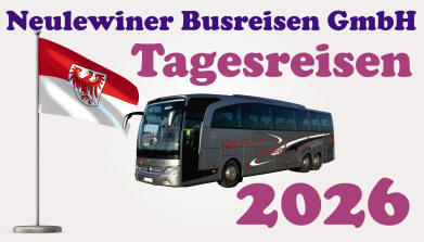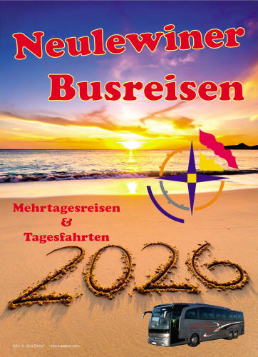 Stand 25.11.2026 INFORMATION zum Reisekatalog 2026! Zur Zeit sind wir voll dabei, den neuen Katalog 2026 fertig zustellen! Wir werden bis Weihnachten, alle Reisen hier online haben - versprochen! Den gedruckten Katalog als "Reisebüchlein" gibt es dann ab Ende Januar 2026, im Versand oder in den Auslagestellen bzw. auf Anforderung! Alle Reisegäste, die 2025 eine Tages- oder Mehrtagesreise mit uns unternommen haben, bekommen den neuen Reisekatalog 2026, automatisch in den Briefkasten. Alle anderen Interessenten schicken Sie uns eine e-Mail unter katalog@neulewiner-busreisen.de einen Brief, oder eine Postkarte oder rufen Sie uns einfach an! Warum? Ab 2026 möchte auch Neulewiner Busreisen einen Teil für unsere Umwelt beitragen. Die Papierherstellung belastet die Umwelt, weil sie enorme Mengen an Holz, Energie und Wasser erfordert. Unser Reisekatalog umfasst 100 Seiten und wir lassen im Durchschnitt 3.600 Kataloge drucken. Natürlich wollen wir Ihnen weiterhin auch den Service bieten, einen Katalog in Papierform geschickt zu bekommen. Um aber nicht unnötig viele Kataloge drucken zu lassen und die Umwelt damit zu belasten, stellen wir ab 2026 auf die Form der "Kataloganfrage" um. Das heißt, dass Gäste die 2025 nicht mit uns gefahren sind, Katalog nicht in Papierform geschickt bekommen, wenn Sie diesen nicht vorher anfordern. Im Internet finden Sie ab Dezember 2025, bereits die neuen Reisen für 2026. Sollten Sie aber trotzdem einen Katalog in Papierform bekommen wollen, müssen Sie uns diese unter den oben genannten Möglichkeiten mitteilen. Wir werden selbstverständlich weiterhin in den aktuellen Medien mit Neuigkeiten für Sie präsent sein und die direkte Werbung über eine kleine Zeitung gestalten!